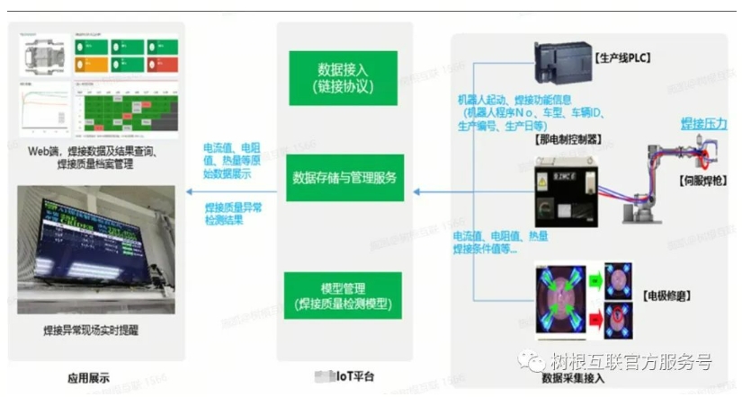 在某知名汽車整車廠焊接車間,每一道焊點(diǎn)都承載著該企業(yè)對(duì)精細(xì)工藝的堅(jiān)守和對(duì)優(yōu)質(zhì)產(chǎn)品的追求。憑借2000余個(gè)焊點(diǎn)、90%的自動(dòng)化率和200臺(tái)精密設(shè)備,該企業(yè)基本實(shí)現(xiàn)了焊接過(guò)程的全自動(dòng)化。然而,如何甄別出不良焊點(diǎn),如何進(jìn)行持續(xù)優(yōu)化提升呢?樹(shù)根科技結(jié)合自身在數(shù)據(jù)采集和AI算法上多年的技術(shù)沉淀,結(jié)合企業(yè)豐富的業(yè)務(wù)知識(shí),雙方共創(chuàng),實(shí)現(xiàn)了焊點(diǎn)質(zhì)量自動(dòng)檢測(cè)。