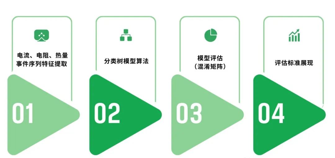 本項(xiàng)目除焊接數(shù)據(jù)采集集中存儲(chǔ)、可視化展示外,還加入基于機(jī)器學(xué)習(xí)的算法模型,實(shí)現(xiàn)部分焊接質(zhì)量問(wèn)題自動(dòng)判斷。WE部門(mén)業(yè)務(wù)人員已收集約百余組焊接過(guò)程數(shù)據(jù),并逐一做標(biāo)簽分類,用于AI算法模型構(gòu)建。模型構(gòu)建步驟如下: