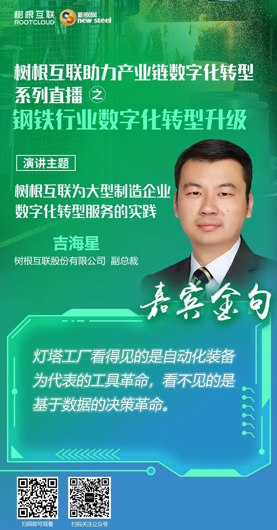 2022年5月7日,在廣州市“鏈長(zhǎng)制”辦公室(廣州市工業(yè)和信息化局)的指導(dǎo)下,樹根科技作為廣州市“軟件和信創(chuàng)”產(chǎn)業(yè)鏈“鏈主”企業(yè),聯(lián)合新鋼網(wǎng)舉辦樹根科技助力產(chǎn)業(yè)鏈數(shù)字化轉(zhuǎn)型系列直播之“鋼鐵行業(yè)數(shù)字化轉(zhuǎn)型升級(jí)”活動(dòng)。 本次直播累計(jì)在線觀看達(dá)到2300+人次,獲得了鋼鐵行業(yè)從業(yè)者們的高度關(guān)注,活動(dòng)邀請(qǐng)了張杰斐、吉海星、劉連珍三位行業(yè)專家分享了對(duì)鋼鐵行業(yè)數(shù)字化轉(zhuǎn)型升級(jí)的實(shí)踐與思考,為廣大鋼鐵企業(yè)提供了轉(zhuǎn)型升級(jí)的新思路。