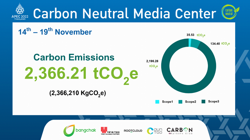 除此之外,Bangchak Group還將通過碳市場俱樂部提供的碳信用(TVER)和可再生能源證書(REC)抵消碳排放,通過抵消APEC 2022泰國媒體中心的碳足跡,共同助力碳中和真正落地。