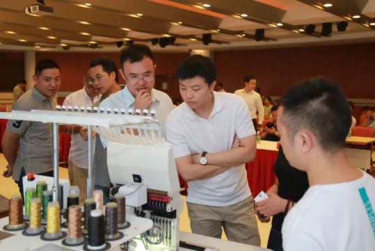 企業(yè)代表觀看新型智能繡花機(jī)