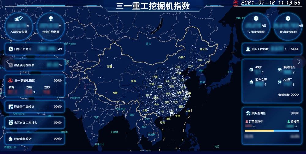湘江之畔,三一重工“18號廠房”的大屏幕上,實(shí)時(shí)滾動著遍布全國50多萬臺挖掘機(jī)、攪拌站、起重機(jī)等工程機(jī)械的運(yùn)行數(shù)據(jù),一挖一鏟間,一張反映中國經(jīng)濟(jì)活力的指數(shù)地圖躍然屏上。